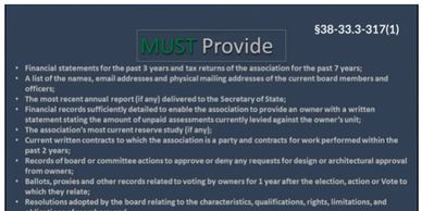 A formal request for all information may be pursued according to the guidelines established by the HOA and available within the Documents Section.